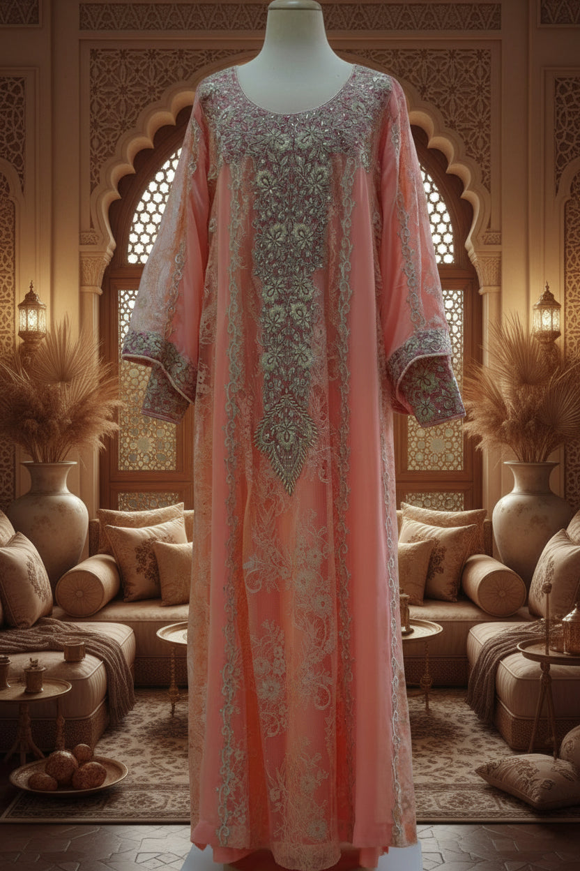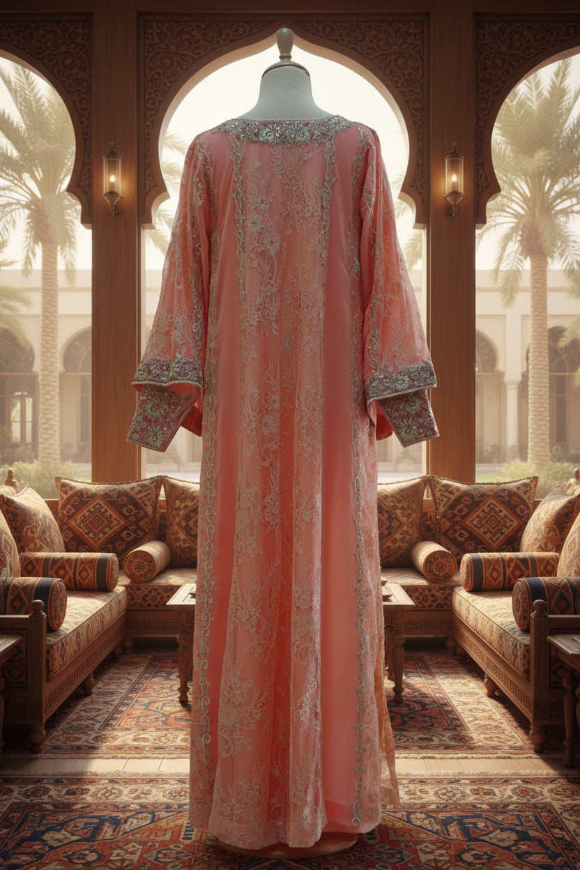 القطعة: شيفون ميزع مع تور منقط و البطانة حرير